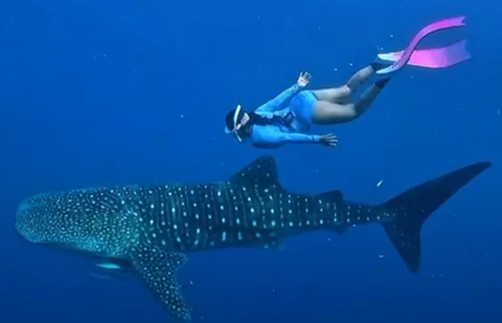 • Take a picture of swimming or snorkeling with whale shark